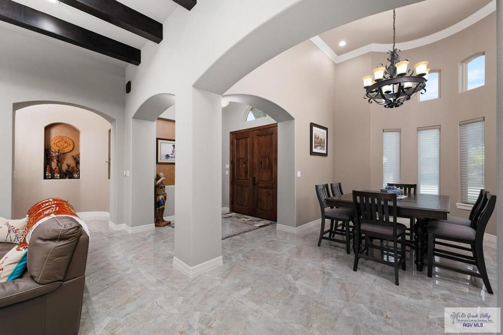 GORGEOUS 4/3/2 Home in the Desirable Gated Indian Wells Subdivision of Treasure Hills. This Mediterranean Style Home was a Model home constructed by Cano Home Builders. This immaculate home features polished porcelain tile throughout, crown molding, decorative niches, granite countertops. Step-into the beautiful living room with a stone gas fireplace, wood decorative beams, and windows overlooking the golf course. The kitchen is a Chef's dream with its high-end stainless appliances, gas cooktop, spacious bar & center island, and custom kitchen cabinets made from Knotty Alder Pine. You will LOVE the spacious master suite with its large separate shower, jetted garden tub, and large closet with built-ins. Split floor plan with 3 additional spacious bedrooms. 2 Additional baths include a Jack and Jill and a private guest restroom. The laundry room offers plenty of cabinet space, a sink and a conveying washer and dryer. Enjoy the backyard with its covered patio overlooking the golf course.